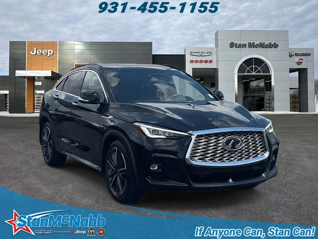 Experience luxury and performance with this pre-owned 2023 INFINITI QX55 SENSORY, featuring 33,763 miles. Designed for those who appreciate a blend of style and functionality, this vehicle stands out with its sophisticated exterior and advanced features. Equipped with a robust AWD system and powered by a 4-cylinder, 2.0L engine, this INFINITI QX55 delivers a smooth and dynamic driving experience, ensuring confidence on diverse road conditions. Inside, the INFINITI QX55 SENSORY elevates comfort with premium leather seats, offering an inviting atmosphere for both driver and passengers. Engage with the world effortlessly through the hands-free Bluetooth system, allowing seamless connectivity on the go. The integrated Android Auto ensures access to your essential apps and navigation at your fingertips, enhancing your driving convenience. For entertainment, the BOSE stereo system provides an immersive audio experience, perfect for enjoying your favorite playlists. The back-up camera adds an extra layer of safety, making parking and reversing a breeze. The 2023 INFINITI QX55 SENSORY is a testament to thoughtful engineering and luxurious design, offering a refined driving experience for those who seek excellence in every journey. Don't miss the opportunity to own a vehicle that harmonizes performance with luxury.