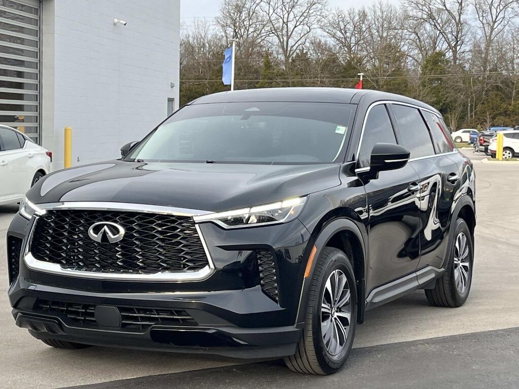 Keep your hands warm all winter with a heated steering wheel in the vehicle . This INFINITI QX60 has a clean CARFAX vehicle history report. It's Forward Collision Warning feature alerts drivers to potential front-end collisions. This INFINITI QX60 comes equipped with Android Auto for seamless smartphone integration on the road. Good News! This certified CARFAX 1-owner vehicle has only had one owner before you. The INFINITI QX60 offers Apple CarPlay for seamless connectivity. This vehicle keeps you comfortable with Auto Climate. The leather seats in this 2023 INFINITI QX60 are a must for buyers looking for comfort, durability, and style. See what's behind you with the back up camera on this vehicle. The state of the art park assist system will guide you easily into any spot. This 2023 INFINITI QX60 's Lane Departure Warning helps keep you in your lane. This unit features a hands-free Bluetooth phone system.Carry lots of cargo while your passengers are comfortable. Anti-lock brakes are standard on this model. This unit is equipped with all wheel drive. This 2023 INFINITI QX60 is accented with premium quality alloy wheels. This model offers Android Auto for seamless smartphone integration. Apple CarPlay: Seamless smartphone integration for the INFINITI QX60 - stay connected and entertained on the go! It keeps you comfortable with Auto Climate. The high efficiency automatic transmission shifts smoothly and allows you to relax while driving. See what's behind you with the back up camera on this INFINITI QX60. It is painted with a sleek and sophisticated black color. This vehicle is a certified CARFAX 1-owner. It has a clean CARFAX vehicle history report. Set the temperature exactly where you are most comfortable in this INFINITI QX60. The fan speed and temperature will automatically adjust to maintain your preferred zone climate. The INFINITI QX60 features cruise control for long trips. Electronic Stability Control is one of many advanced safety features on this 1/2 ton suv. This INFINITI QX60 has a V6, 3.5L high output engine. Know you and your passengers are protected with the front and rear side curtain airbags in the INFINITI QX60. It's Forward Collision Warning feature alerts drivers to potential front-end collisions. The vehicle has front air bags that will protect you and your passenger in the event of an accident. This 2023 INFINITI QX60 is equipped with front side curtain airbags. Enjoy the tried and true gasoline engine in the vehicle. This vehicle features a hands-free Bluetooth phone system. Heated seats for those cold winter days are included in it. The INFINITI QX60 is pure luxury with a heated steering wheel. With the keyless entry system on this unit you can pop the trunk without dropping your bags from the store. The INFINITI QX60's Lane Departure Warning keeps you safe by alerting you when you drift from your lane. The leather seats in this model are a must for buyers looking for comfort, durability, and style. With the adjustable lumbar support in the vehicle your back will love you. Enjoy the convenience of the power liftgate on the vehicle. It comes with power adjustable seat to get your seat just right for you. Power seats are a must! The rear parking assist technology on the INFINITI QX60 will put you at ease when reversing. The system alerts you as you get closer to an obstruction. This 1/2 ton suv has satellite radio capabilities. This unit is built for driving comfort with a telescoping wheel. This 2023 INFINITI QX60 comes standard with a state of the art traction control system. This 2023 INFINITI QX60 is equipped with the latest generation of XM/Sirius Radio.